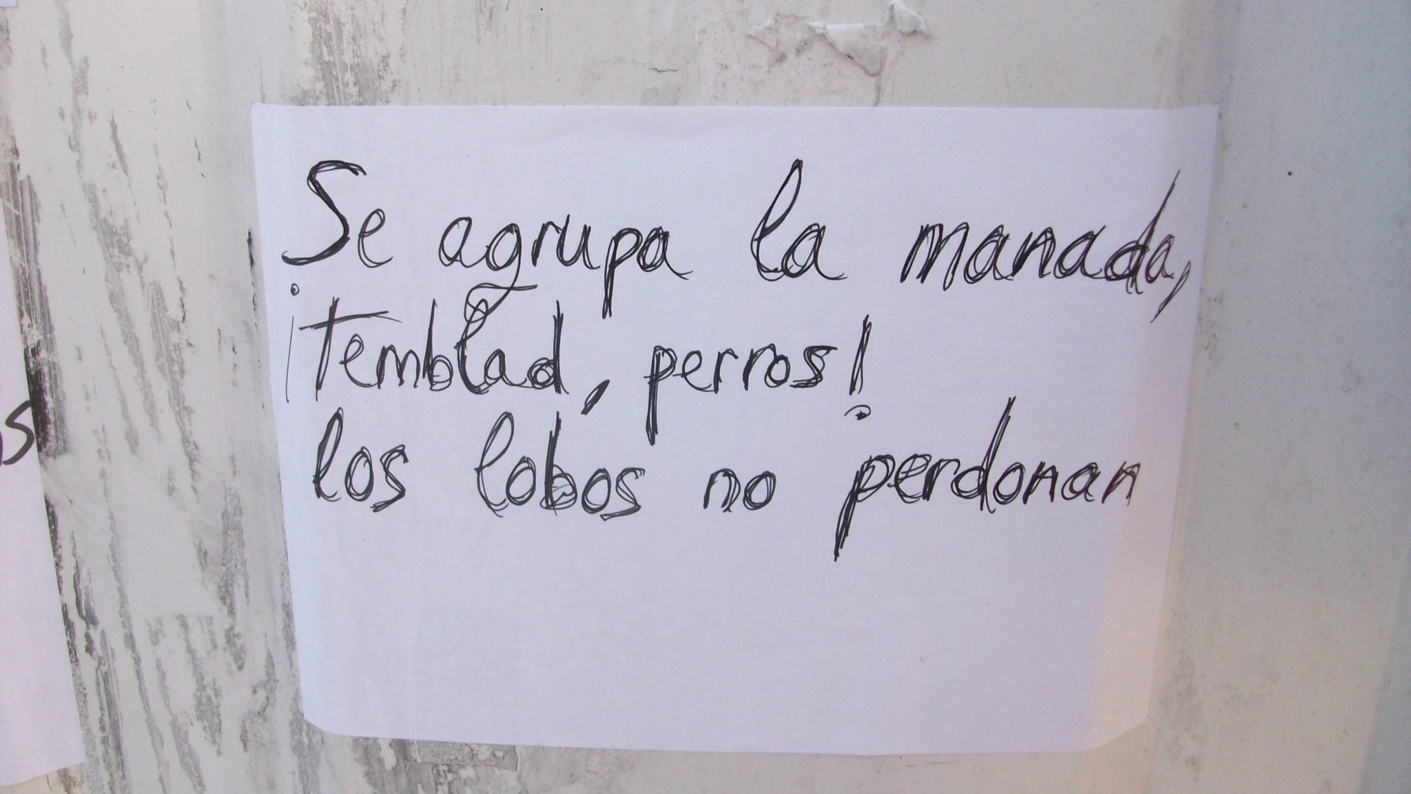 Se agrupa la manada, temblad perros, los lobos no perdonan.