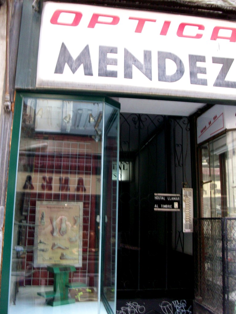 “En la calle del León, en Madrid el anuncio de una óptica anticuaria nos dirige a un escaparate ubicado en una de las paredes de un portal de una casa de vecinos (…) que exhibe ¡artículos de ortopedia!”