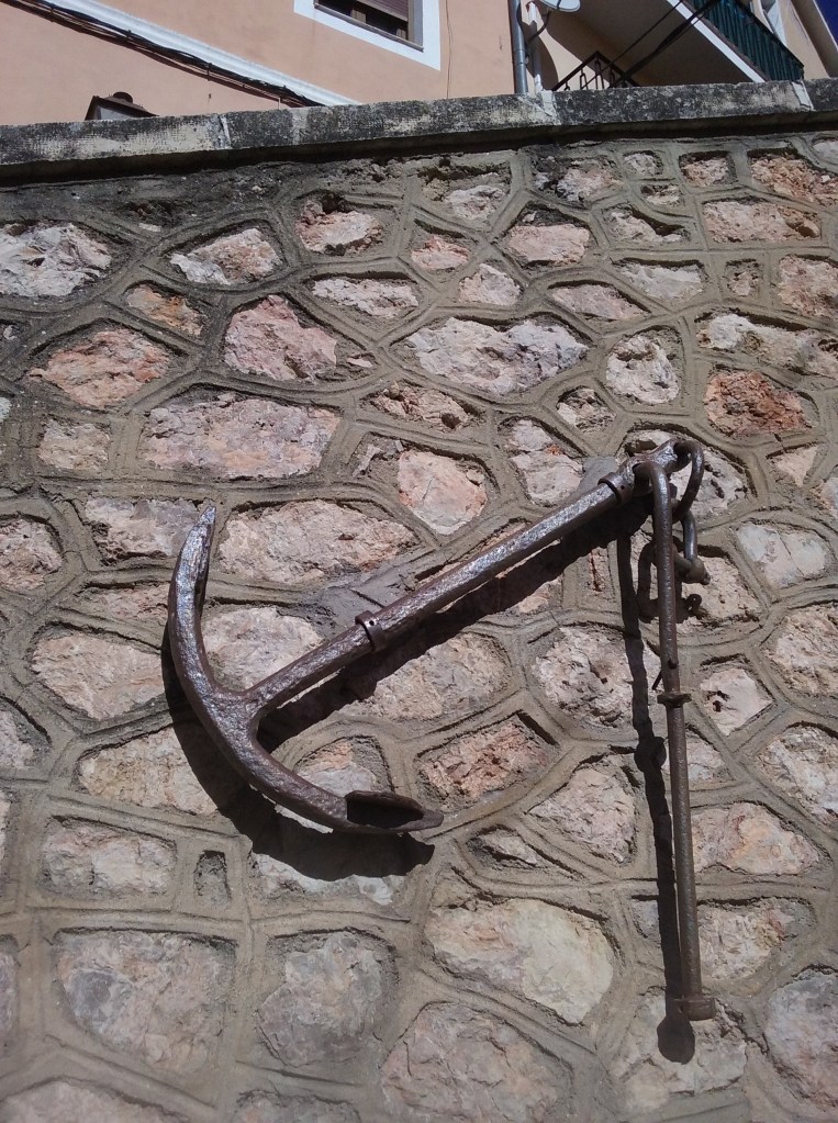 Un poco después encontramos colgada de un muro un ancla. Un elemento marino fuera de contexto en la vigilia en una ciudad como Cuenca, pero quizá útil en los sueños, en tanto que la salida al mar es frecuente en las ciudades oníricas de tierra adentro. Yo mismo he soñado alguna vez con el puerto de Móstoles, donde el partido independentista catalán CUP tiene un acogedor bar-hotel.