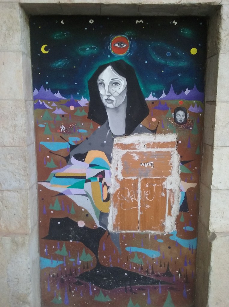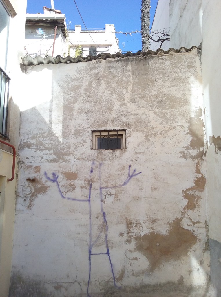 Entre la plaza del Carmen y el mirador de Mangana hallamos una pintada que decía, sencillamente, “te quiero 4”. Asociamos el 4 amado con el número del callejón en el que por la mañana encontramos a la bestia de la pesadilla de Xisela encerrada. Como un grito de celebración de los habitantes de la ciudad onírica de Cuenca ante el peligroso minotauro por fin domeñado. Unos metros más allá, un nuevo arlequín nos insinuaba que el topo de la revolución proletaria seguía su trabajo.
