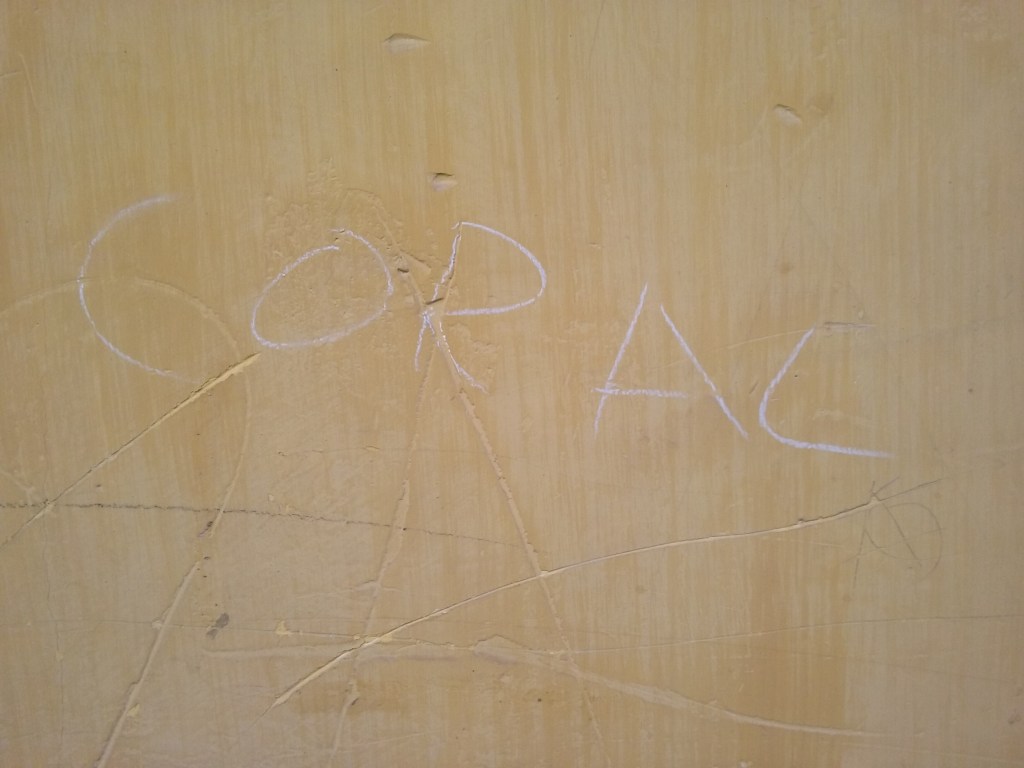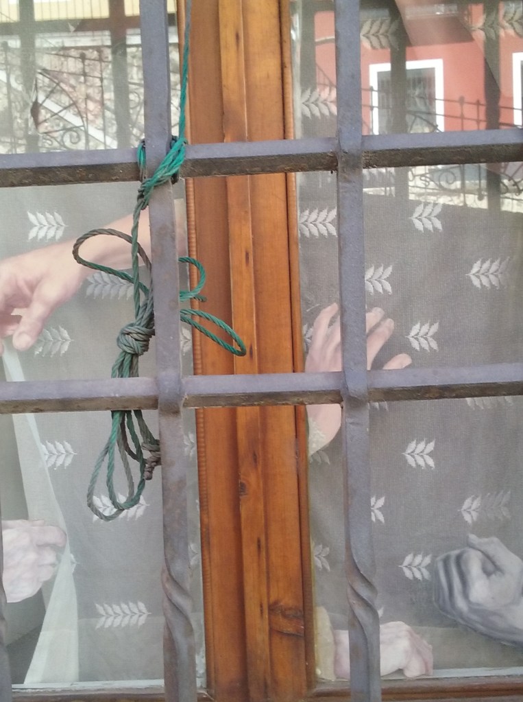 Siguiendo la calle Andrés de Cabrera hasta su conversión en Alfonso VIII dos hallazgos que nos parecieron intuitivamente vinculados con lo onírico pero en los que aún no hemos sabido encontrar ningún hilo suelto: una ventana que dejaba ver unas cortinas entre las que bailaban múltiples manos y la palabra coral, escrita en tiza. Como la dialéctica de los sueños es compleja, quizá Cuenca también haya emitido señales a los sueños de las noches futuras, que aún están por llegar.