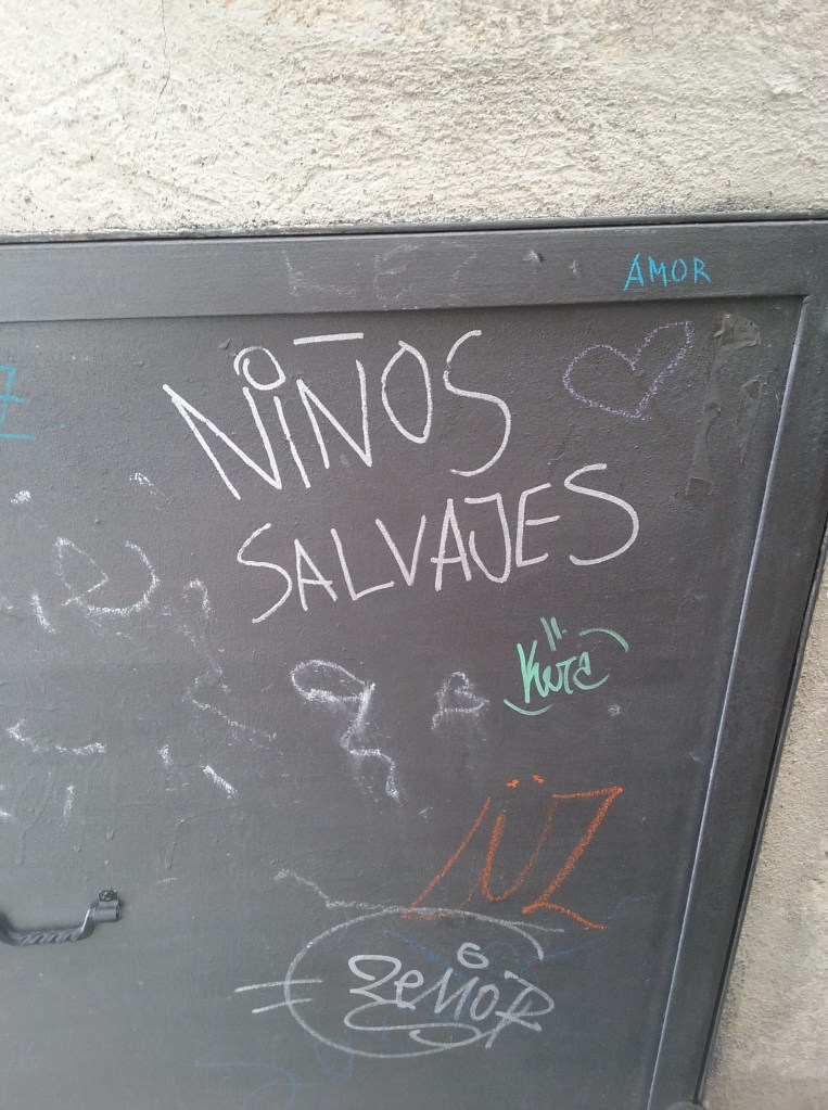 Sorprendentemente, y en uno de los azares objetivos más fascinantes de la jornada, pues los puntos del plano fueron señalizados con los ojos cerrados, el tesoro número 4, el cruce de la calle Alfonso VIII con el convento de Las Esclavas, marcaba el lugar exacto de la casa de fiestas descubierta ocho años antes, que apenas unas calles atrás acababa de ser recordada como el local asociativo Rompe el Círculo en la ciudad onírica de Xisela. Esta casualidad nos pareció profundamente significativa. El bajo del edificio estaba ocupado por una suerte de pequeño bar pastelería, llamado La anteplaza, muy parecido al que la gente más optimista del colectivo quería abrir en el nuevo proyecto, si es que este finalmente sobrevivía y continuaba su andadura. El nombre nos remitía vagamente a una suerte de retaguardia del espíritu de las plazas ocupadas del 15m, acorde con el planteamiento que algunos defendíamos para el futuro del ateneo. A unos metros, en la tapa de un cuadro de luz, pudimos leer la pintada Niños Salvajes: un guiño simbólico al origen prehistórico del proyecto, el grupo de gamberrismo ilustrado y descolonización de la vida cotidiana Huérfanos Salvajes, que visto retrospectivamente había perdido su orfandad política (en el sentido de desorientación sin referentes ni arraigo) en la construcción y gestión de un espacio como Rompe el Círculo. Como ocurre con algunos sueños que sirven para acentuar voluntades y tomar decisiones, toda esta constelación de descubrimientos alrededor del punto número 4 del plano, en alineación con el número 8, asentó en nuestro ánimo fuerzas renovadas para revertir la decadencia del proyecto político al que habíamos unido la última década de nuestra vida.