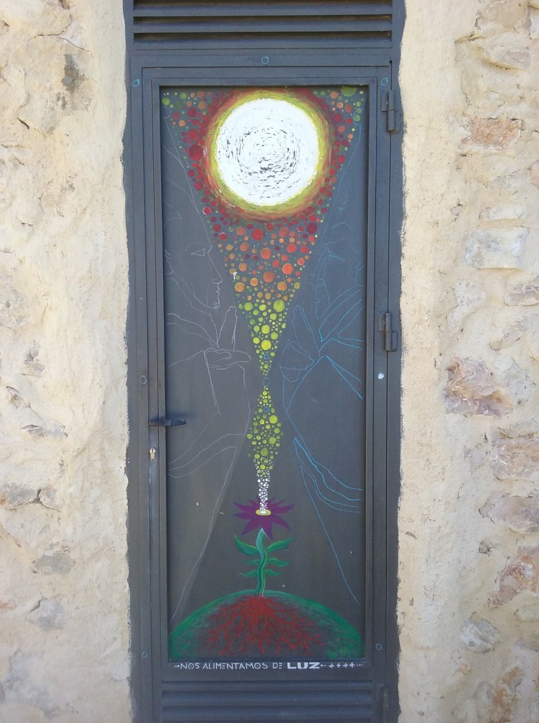 Los siguientes pasos de la batida nos regalaron algunos jirones de sustancia onírica que todavía no hemos sabido descifrar: un dibujo con la frase “nos alimentamos de luz”, quizá una oda a la fotosíntesis o una imagen con una ambición simbólica más sofisticada; también un cántaro semienterrado tomando el sol, como si acopiase luz para un banquete.