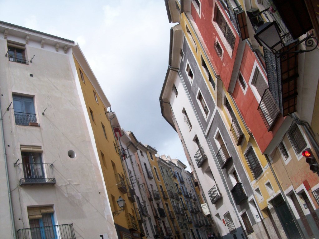 En ese lugar, y con todos los puntos con tesoros visitados, dimos por concluida la batida. Faltaban apenas 15 minutos para el comienzo de otro paseo, más convencional, que partiría de las escaleras de la catedral para recorrer junto con otros turistas y un guía el casco viejo de Cuenca por la noche. La intención era complementar nuestra exploración singular con alguna información histórica general que nos pudiera ser útil para terminar de armar el mapa de nuestra geografía onírica. De toda la información proporcionada, además de anécdotas como la de los rayos caídos sobre la catedral, o la ubicación original del foso, una nos pareció especialmente deslumbrante: la existencia de los llamados popularmente “rascasuelos” en oposición a los rascacielos. Los “rascasuelos” son edificios del barrio de San Martín, al borde del barranco de la hoz del Huécar, en el que la planta baja a nivel de la calle se convierte en la planta cuarta o quinta vista desde el barranco, porque los edificios, además de elevarse en altura, han crecido hacia abajo escarbando en la tierra y proporcionando miradores impresionantes sobre el barranco y el río. Hacer habitable sucesivos niveles del inconsciente para acceder a la contemplación vertiginosa de lo maravilloso: ¿qué otra cosa estábamos haciendo allí, con este ejercicio de geografía onírica? ¿En qué otra ciudad tendrían más sentido, como analogía de todo un comportamiento liberador, la existencia de “rascasuelos” que en el casco viejo de Cuenca?
