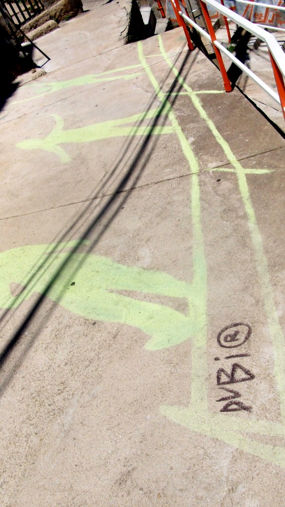 Los hechos objetivos: la mañana del 14 de enero encontramos un grafiti de suelo que representaba a unas sombras realizando acrobacias, grafiti que rápidamente asociamos a algunos sentimientos que provoca la ciudad.
