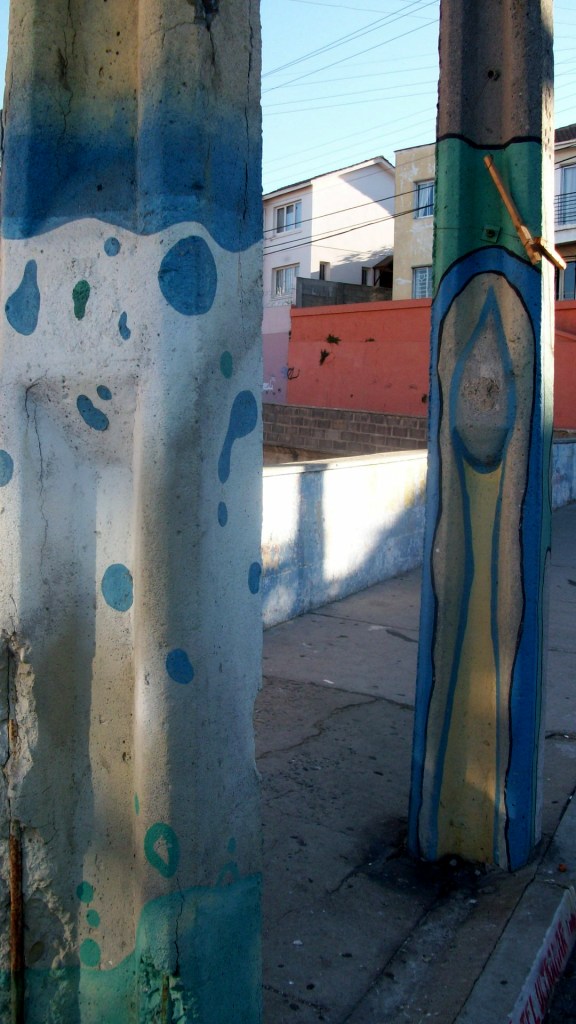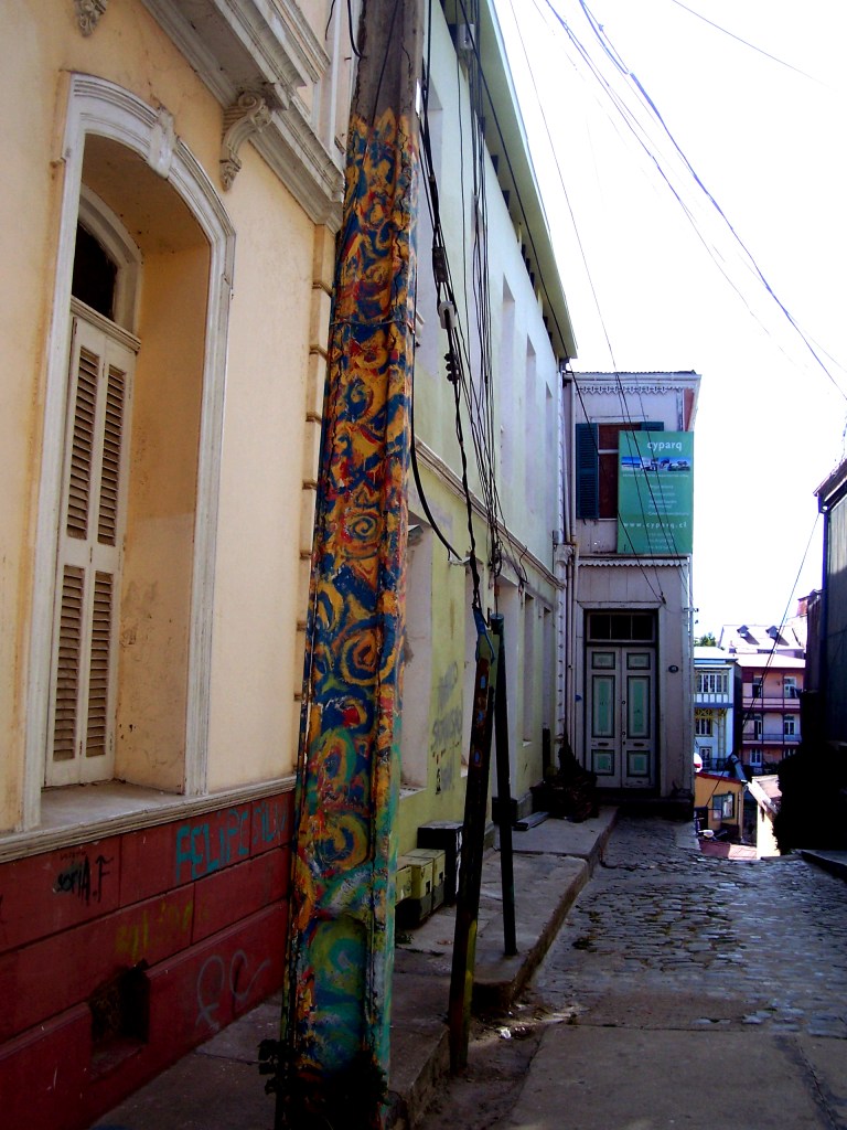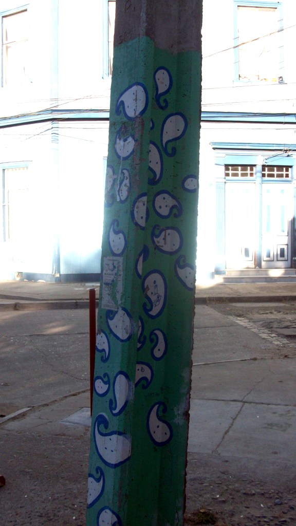 Etnografía reencantada: Muchos postes telefónicos, postes de luz, o farolas en Valparaíso están adornados por pinturas realizadas por sus propios vecinos. Sabemos que son realizadas por los vecinos y no por las instituciones porque ninguno de estos objetos responde a un plan de embellecimiento racional, dada la dispersión caótica de estas pinturas por el distinto mobiliario urbano.