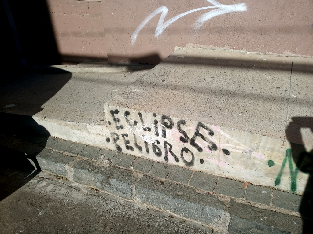 En 2022 quise volver a visitar el lugar donde van las cosas que se pierden en los sueños. Cerca de él, una pintada me advirtió del peligro de un eclipse cercano. Ya en el lugar, otra pintada señalaba que, en ese mismo sitio, alguien había vuelto a encontrarse. Quizá precisamente porque había hallado algún objeto onírico perdido. O más probablemente porque en el proceso había descubierto que el objeto onírico perdido más importante somos nosotros mismos, obligados a vivir en esta vida de somnolencia infinita, obligados a hablar de los sueños nocturnos sin darle importancia, y de los sueños diurnos haciendo parodia. Porque si algo merece realmente la pena es ser testigos, siempre primerizos, de los eclipses de realidad de lo maravilloso como el que fuimos testigos aquel 14 de enero de 2009. Un tipo de eclipses mucho más abundantes de lo que nuestros sistemas cosmológicos estropeados de utilitarismo capitalista saben detectar.