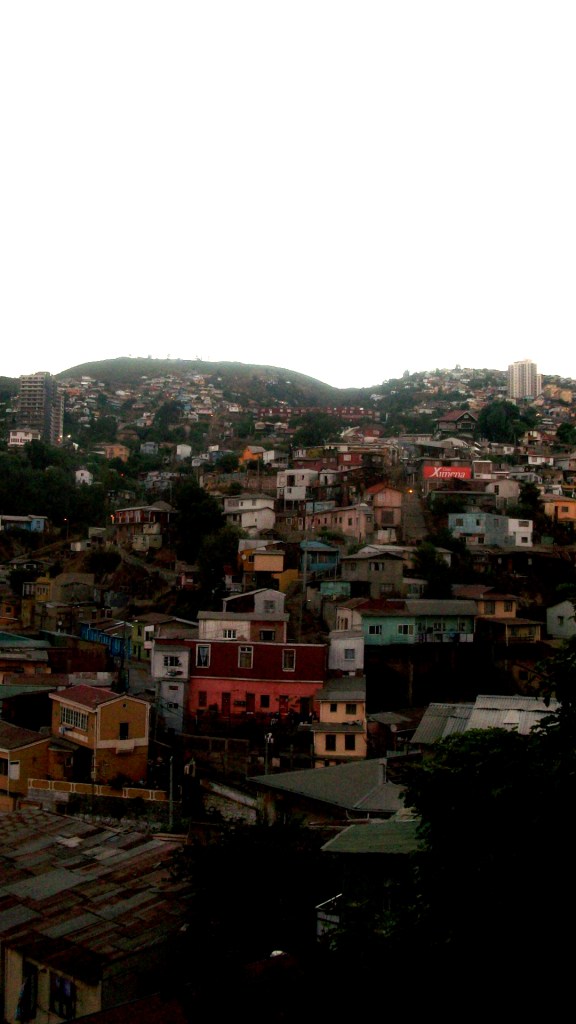Y el ocaso de Valparaíso te hace sentir un refugiado que acampa en los extramuros gigantes del universo, donde uno podría vivir a todo lujo solo de las sobras que caen desde lo alto de una fortaleza ontológica impenetrable. Esta muralla invisible se agrieta un poco en la madrugada, como si la noche estuviera hecha de café y las farolas fueran molinillos que molieran y tostaran la negra oscuridad con la ternura amarillenta de sus focos.