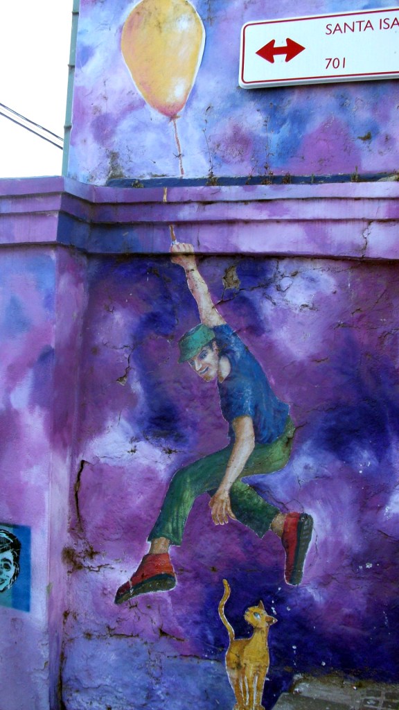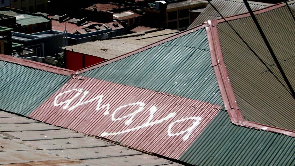 Hechos objetivos: durante los tres días de nuestra etnografía reencantada de Valparaíso, hallamos repartidos por toda la ciudad decenas de grafías que mostraban personas volando agarradas a globos y cometas. A su vez, encontramos, en el patio de una diminuta casa, un tendal repleto con la equipación de todo un equipo de baloncesto. Con la idea de las políticas demográficas de escape en la cabeza, descubrimos desde un cerro un tejado en el que estaba escrito, en unas enormes letras y sin pretensión grafitera (pues su trazo era muy sencillo y no correspondía a los nombres típicos que se usan en el mundo del grafiti), el nombre de Amaya.