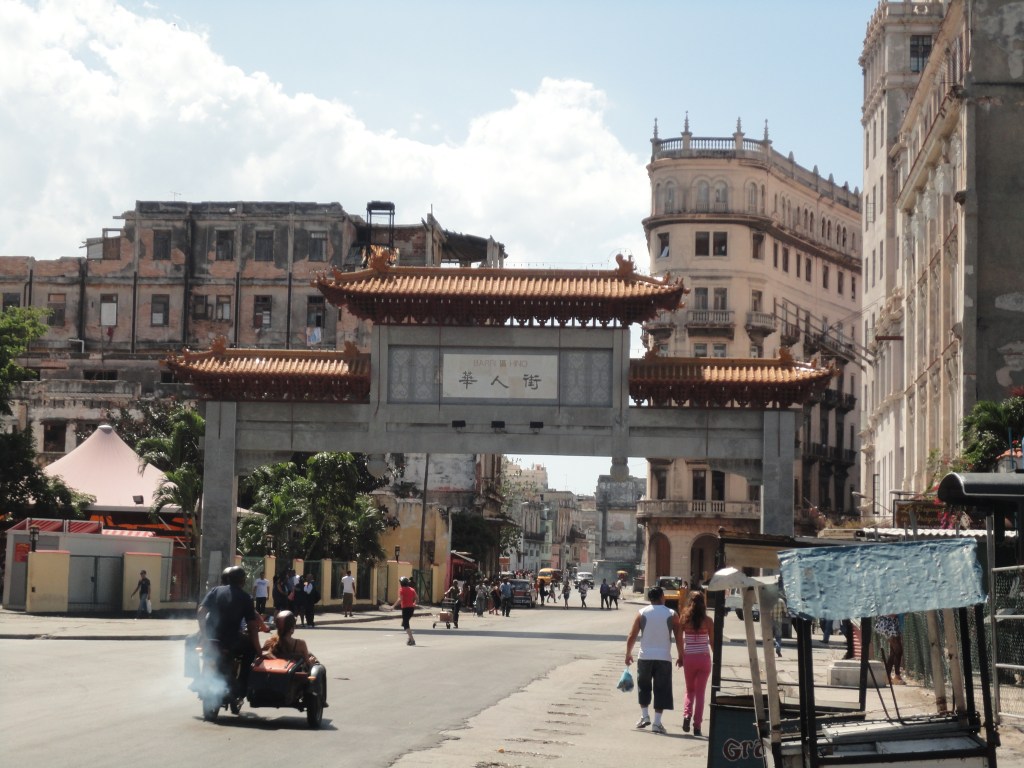 Centro Habana es un enorme rastro con joyas de art decó y art noveau de quinta mano, que tiene algo de termitero vibrante. Una ciudad mucho más populosa, remendada y vividora de lo que un occidental, en su profiláctico estado mental colectivamente inducido, suele estar acostumbrado a tratar. La Habana se vuelve aquí hipercondriaca, si se me permite inventarme una palabra para definir lo contrario de la hipocondría como hábito de masas que define nuestra rutina psíquica: en Centro Habana impera una cierta falta de respeto a la muerte, al roce que contagia, al riesgo y al peligro. Dentro de ella está el Barrio Chino, ya casi sin chinos, intentando representar una obra de teatro oriental que resulta tierna pero grotesca, como los juegos de un niño imitando a un adulto.
