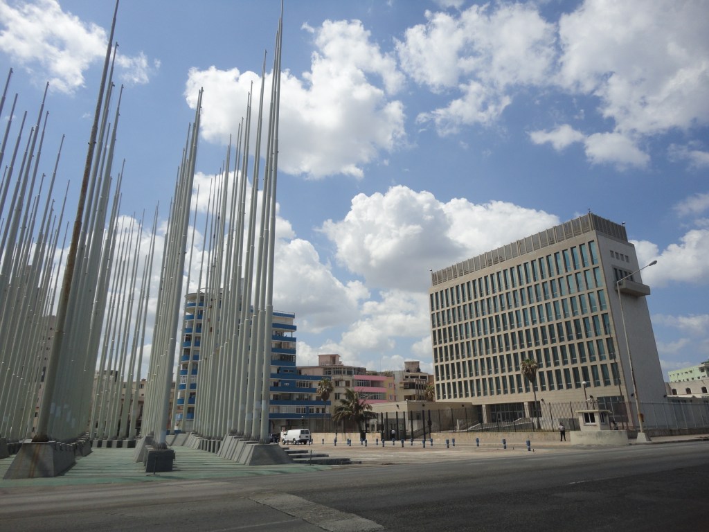 Escondido lejos de la panorámica visualmente más explotada, cuando uno deja atrás esa especie de cordillera visual de montañas mágicas, La Habana guarda uno de sus lugares más chocantes, el monte de banderas de la Tribuna Antiimperialista: 138 astas amenazantes frente a la Oficina de Intereses Americanos que cuando ondean con banderas cubanas parecen un espectáculo de fuegos artificiales patriotero detenido en el tiempo. Y cuando están vacías un Gólgota siniestro en el que empalar agentes de la CIA si un día la la geopolítica se pone bruta. Después comienza un Malecón diferente, con edificios individualistas, altos y sin lustre, de un colorido feo pero llamativo, que mi memoria asoció, sin explicación racional, con la estética de los helados de mi primera infancia.