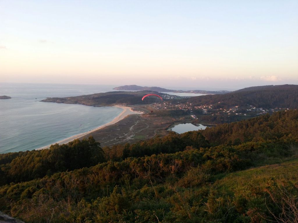 Repasando las fotos de aquel 2 de octubre advierto la presencia de un parapente, que había olvidado. El mirador de Monte Ventoso es uno de los puntos de despegue que utiliza el Club de Parapente de Ferrol. Recuerdo ahora subir a la cima y cruzarnos con algunos jóvenes que iban a planear sobre la playa de Doniños.
